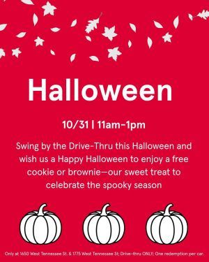 Swing by the Drive-Thru this Halloween and wish us a Happy Halloween to enjoy a free cookie or brownie - ...