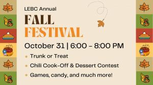 Our annual Trunk or Treat is October 31st from 5:30-7:30pm and will be a fun-filled night of games, treats, hot ...